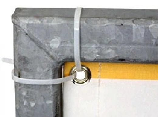 Damit Sie Ihre Balkonverkleidung leicht an den verschiedensten Geländern anbringen können, werden im Saum Ösen angebracht.